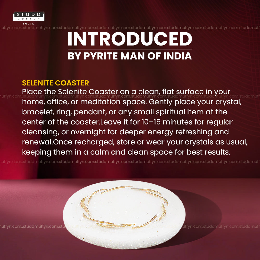 Part of the Studd Muffyn Crystal Collection, from India’s largest crystal company, each Selenite coaster undergoes a rigorous 6-step quality testing process including spectrometer verification, crystal structure analysis, and UV ray testing to ensure authenticity, purity, and energetic integrity.