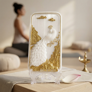The beautifully detailed peacock carving represents beauty, royalty, and divine awakening in Indian tradition. Paired with elegant gold accents and intricate craftsmanship, this piece becomes more than just a spiritual tool—it transforms into a luxurious statement of positivity and refined decor.