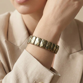 The Pyramid Pyrite Bracelet is a powerful symbol of ambition, confidence, and financial growth. Known as the “Money Magnet" or "Fool's Gold" Pyrite is believed to attract wealth, success, and new opportunities. Its structured pyramid-shaped beads represent focused energy, stability, and strong decision-making, making this bracelet both meaningful and bold in appearance.