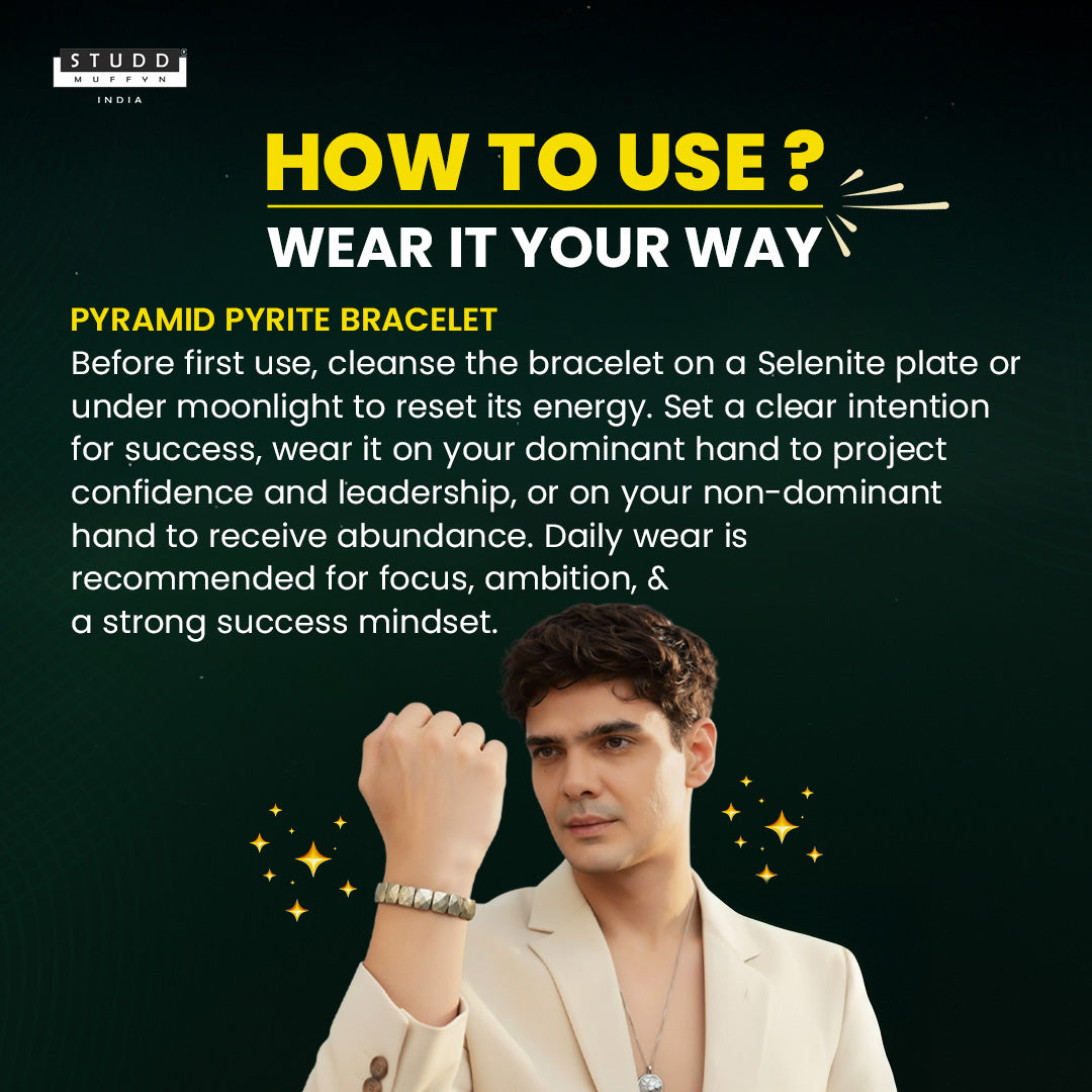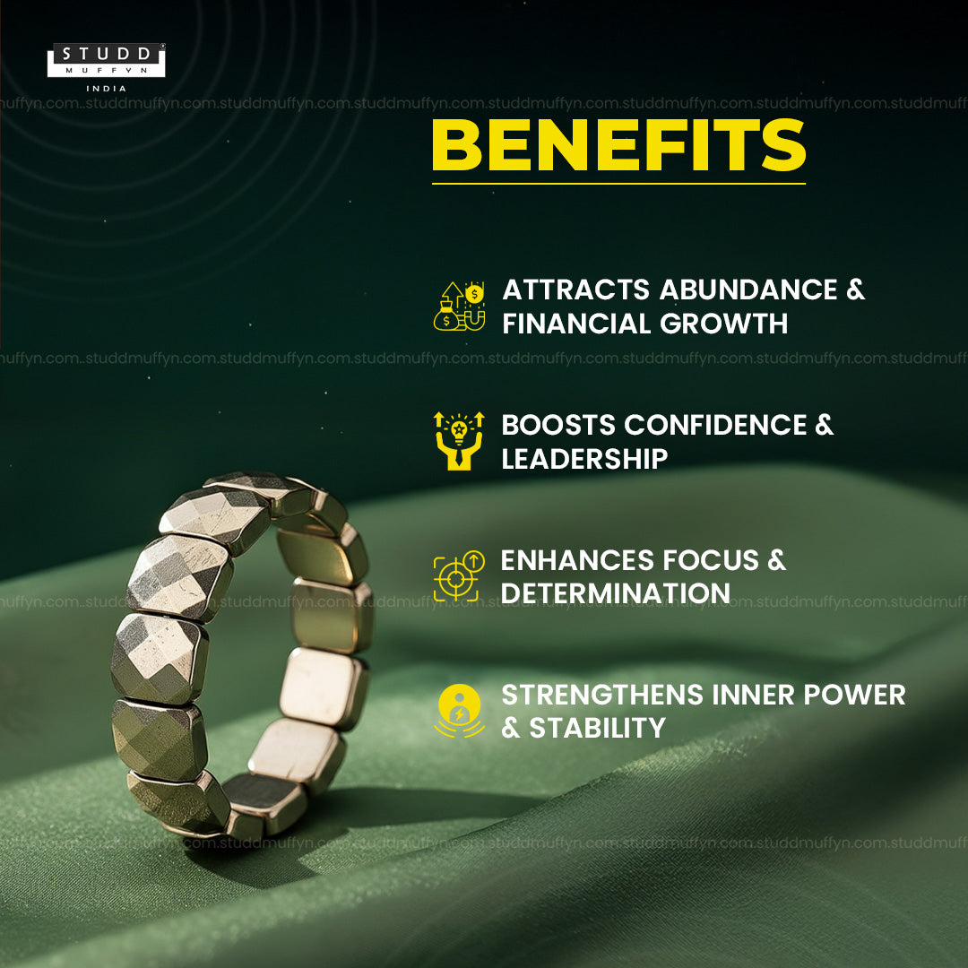 Crafted using 100% authentic and certified Pyrite crystals, each piece passes through strict quality checks including spectrometer testing, UV ray testing, and crystal resonance testing to ensure purity and originality. Carefully handcrafted with premium finishing, it offers a luxurious and aesthetic appeal suitable for both men and women.