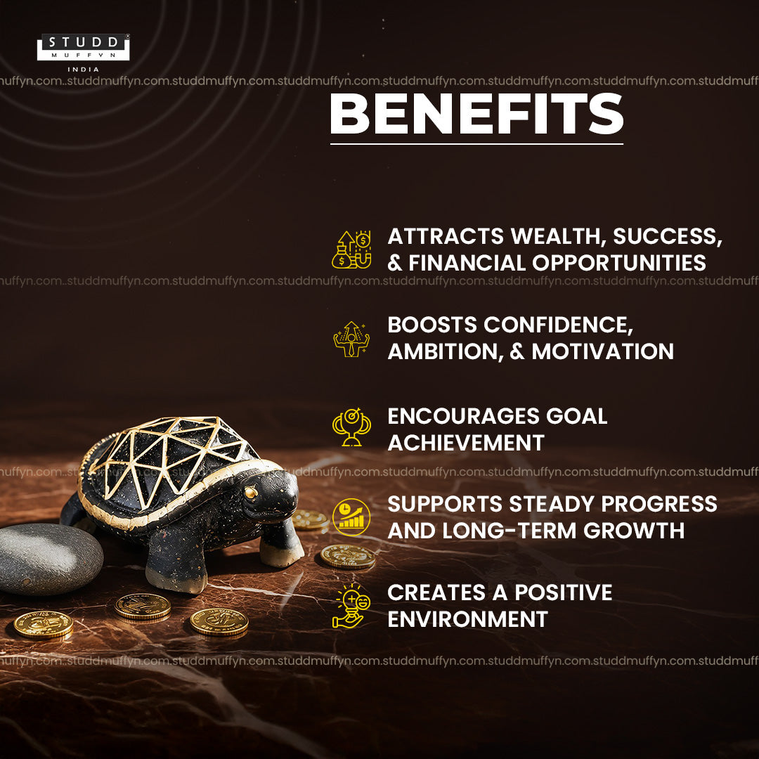 • Geometric Prosperity Shell Design: The turtle shell features a sacred geometric pattern, symbolizing structure, balance, and expansion of prosperity energy.
