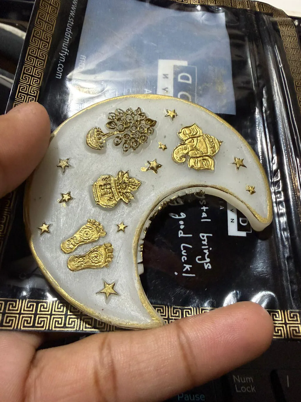 • Sacred Moon Design: The crescent moon symbolizes emotional balance, intuition, and calmness. It supports a soothing energy flow, making your space feel lighter and more peaceful.