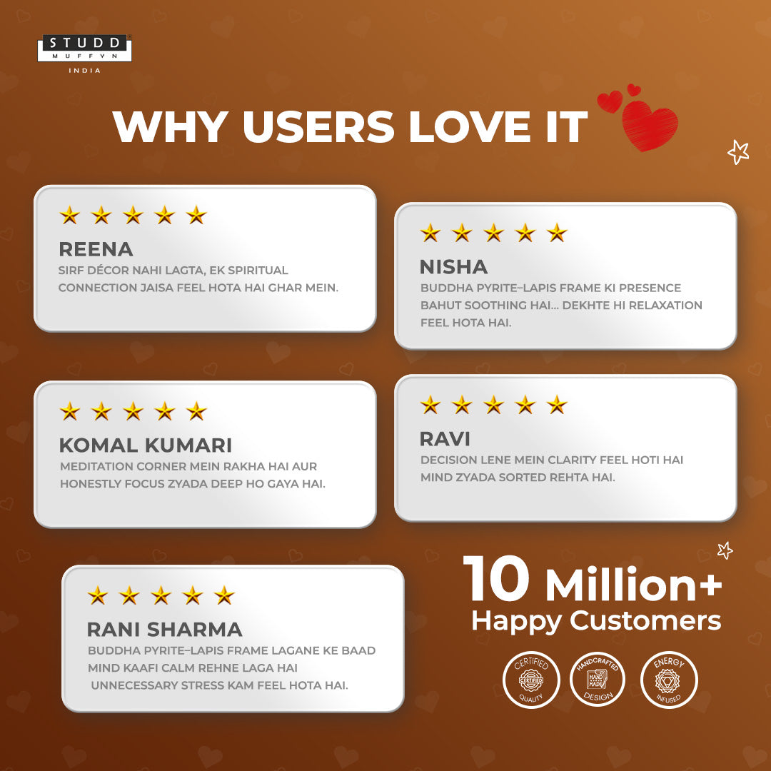 Perfect for your living room, meditation corner, or workspace, the Buddha Pyrite Frame inspires calm, focus, and positive vibes, making it both a meaningful décor piece and a source of spiritual upliftment.