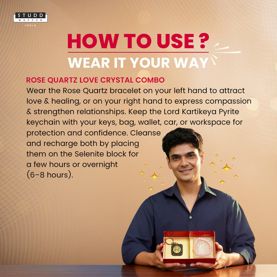 Crafted by Studd Muffyn, India’s biggest crystal energy brand, this combo features 100% genuine, tested, and quality-certified crystals designed with intention and premium finishing.