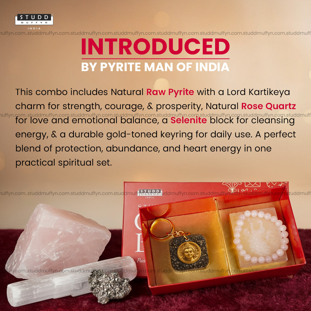 This specially curated combo is designed to attract love in the heart and abundance in life. With the gentle energy of Rose Quartz and the wealth-attracting power of Pyrite, this set beautifully blends romance, emotional healing, and prosperity energy — while offering a refined and premium aesthetic appeal.