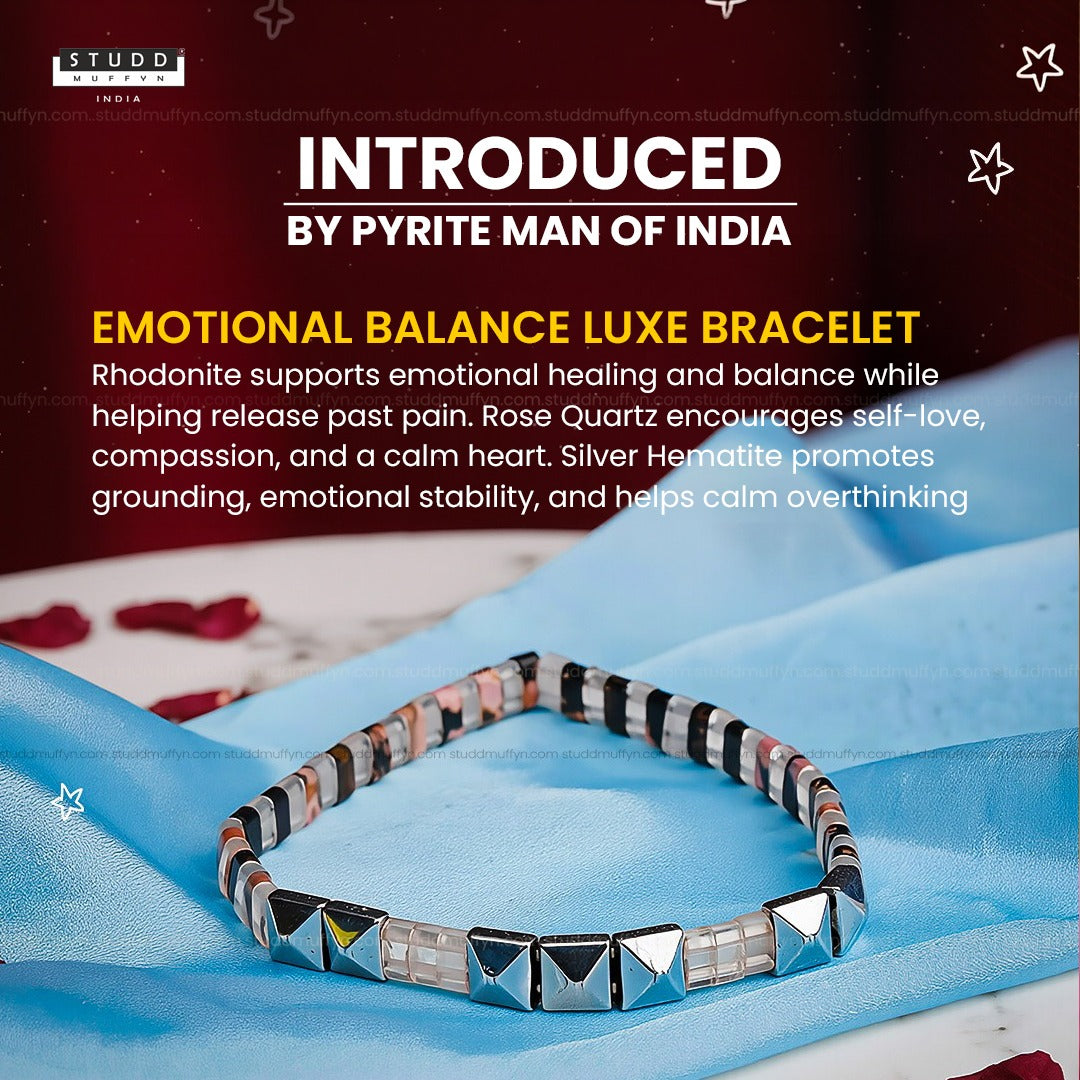 From the Studd Muffyn Crystal Collection, the Emotional Balance Luxe Bracelet is designed for those moments when your heart needs softness, healing, and emotional stability. Elegant, soothing, and meaningful, this bracelet combines Rhodonite, Rose Quartz, and Silver Hematite — creating a gentle flow of love, emotional balance, and grounding energy.