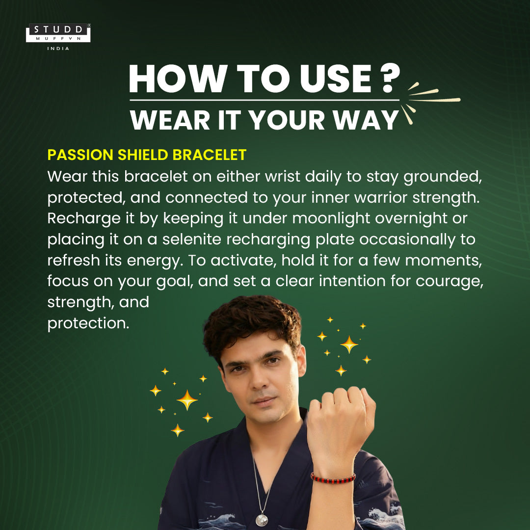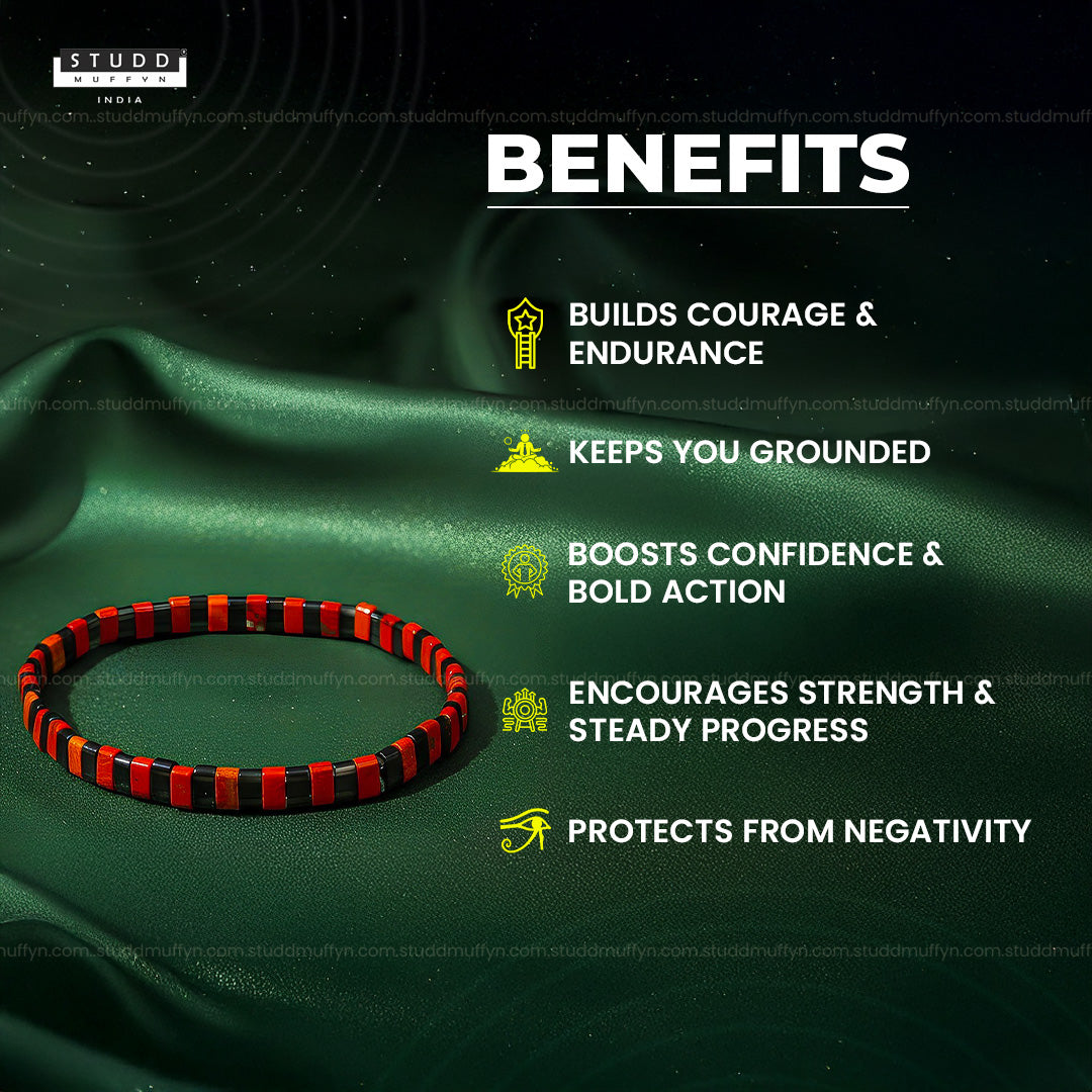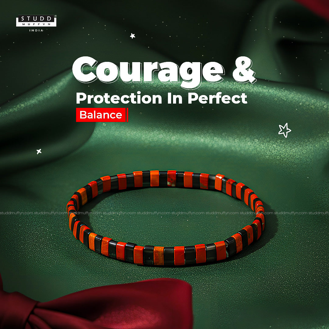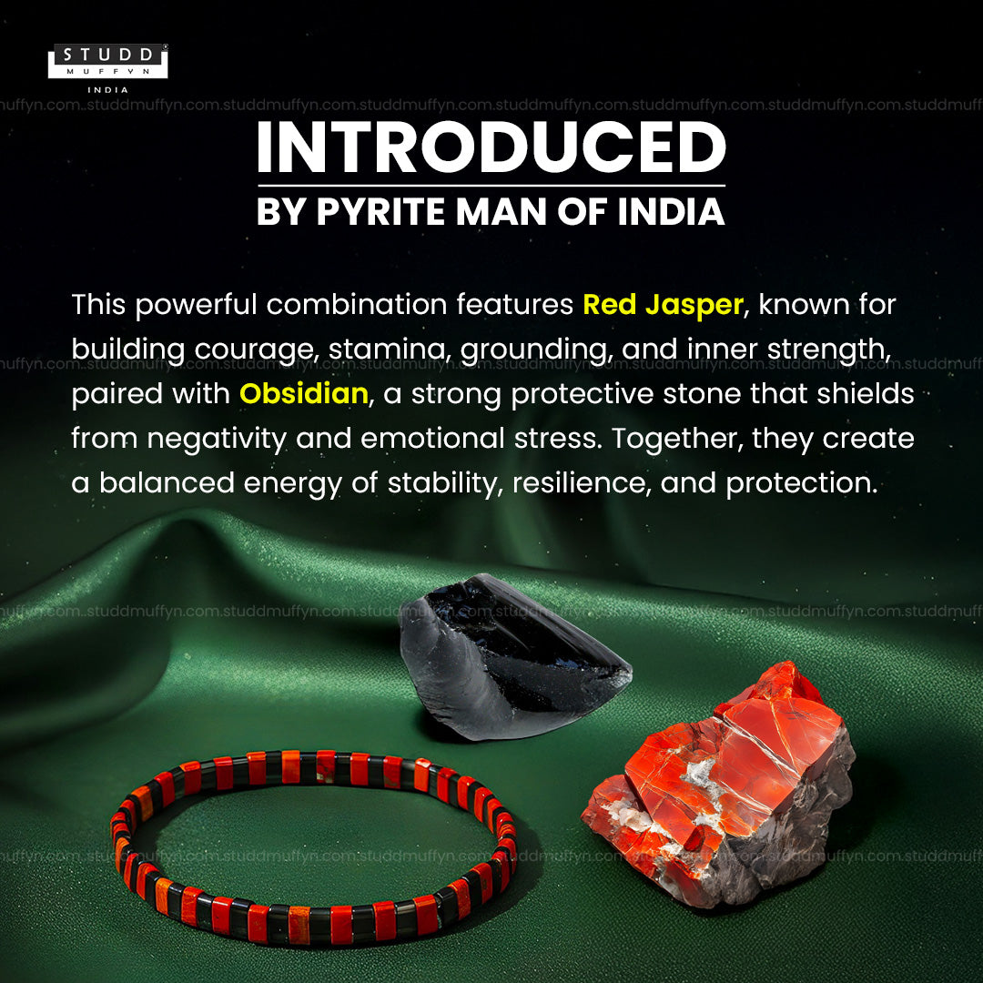 From the Studd Muffyn Crystal Collection, the Warrior Energy Bracelet is designed for those who fight their battles silently and rise stronger every time. Bold, intense, and powerful, it blends Red Jasper and Obsidian in an alternate sequence — creating a steady flow of grounded power and protective force.