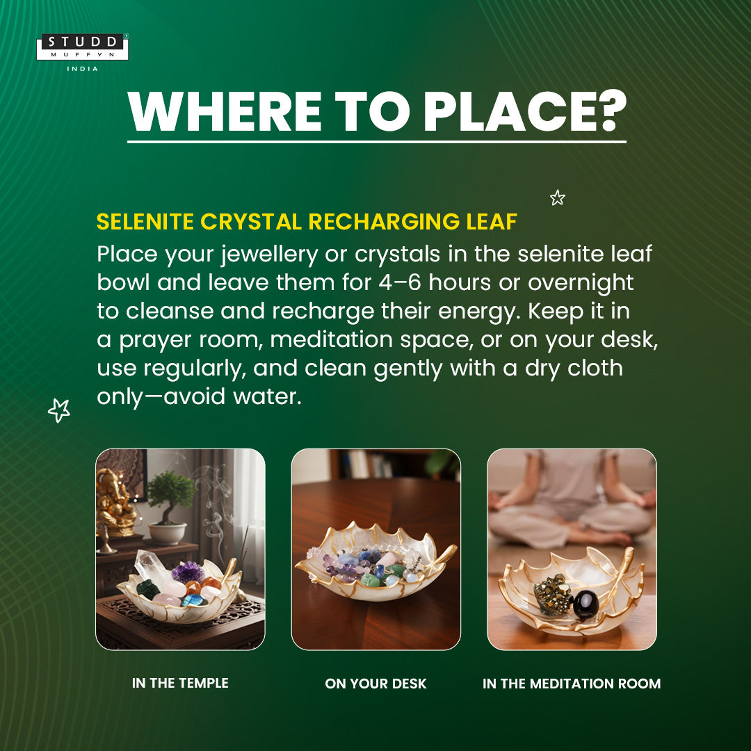 🪷 Selenite Crystal Recharging Leaf – Cleanse • Charge • Elevate
