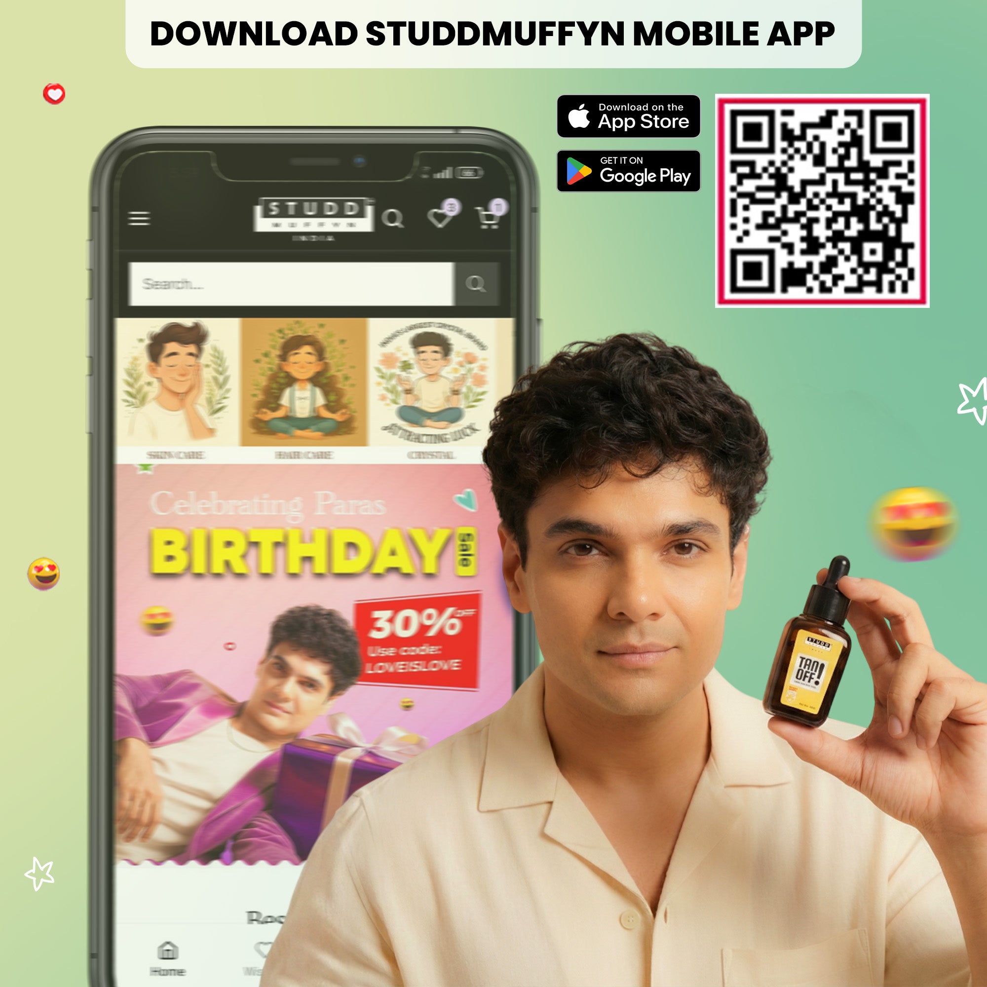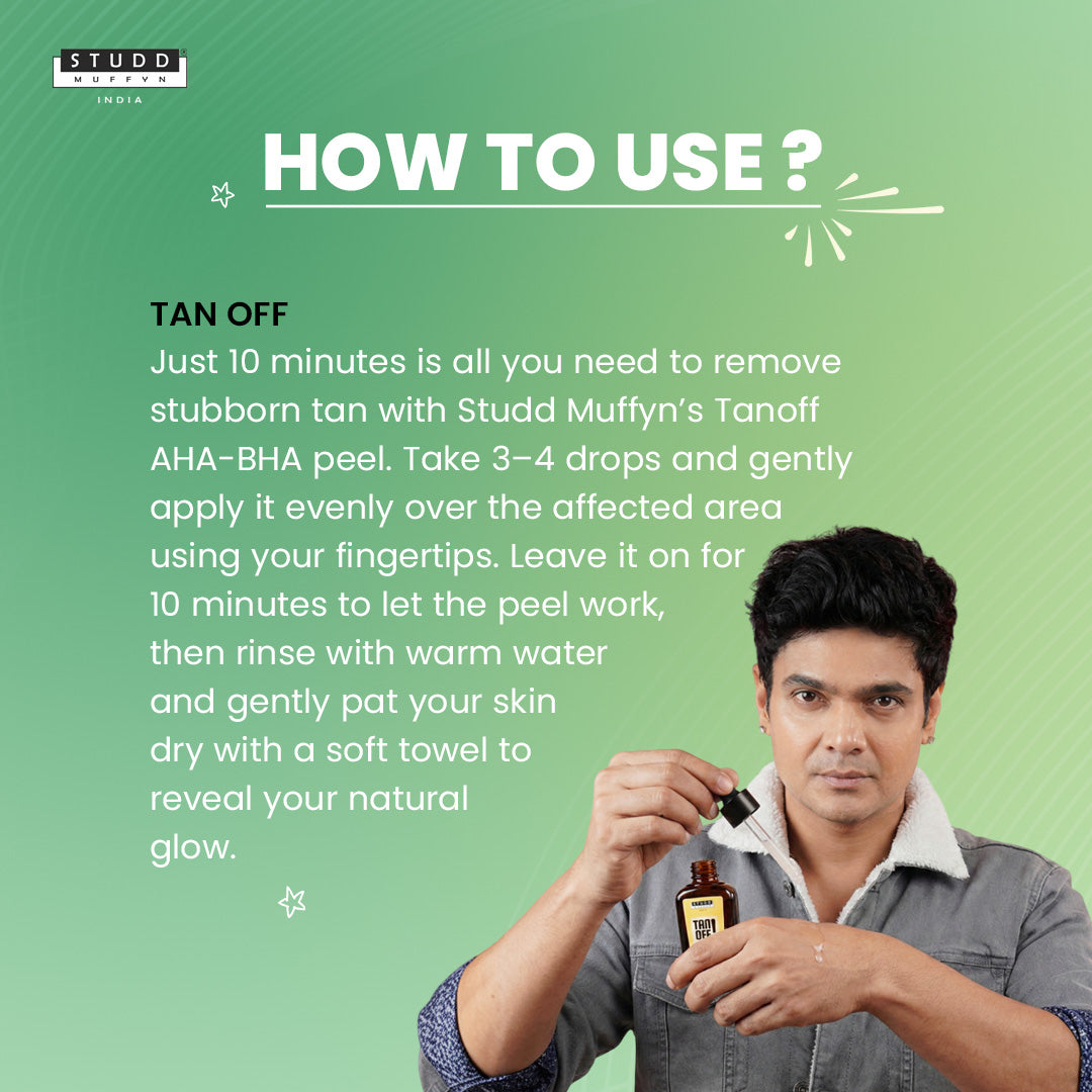 1-So take 3-4 drops of Studd Muffyn's Tanoff on your skin.