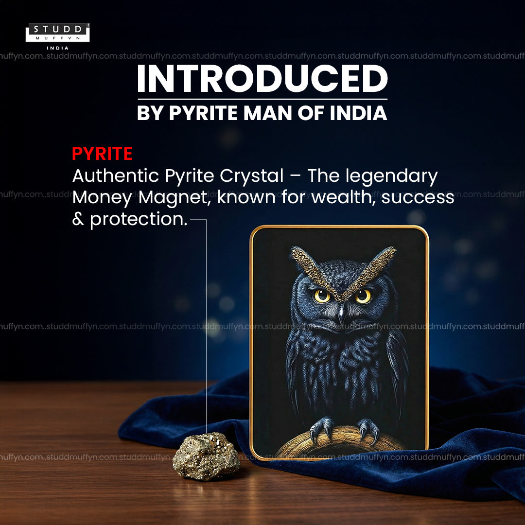 Infused with a strip of authentic Pyrite crystal, often known as âFoolâs Gold,â this artwork transcends visual beauty. Pyrite is revered as a powerful stone for attracting abundance, shielding from negativity, and igniting mental clarity â making this owl not only a visual guardian but an energetic anchor for focus and prosperity.