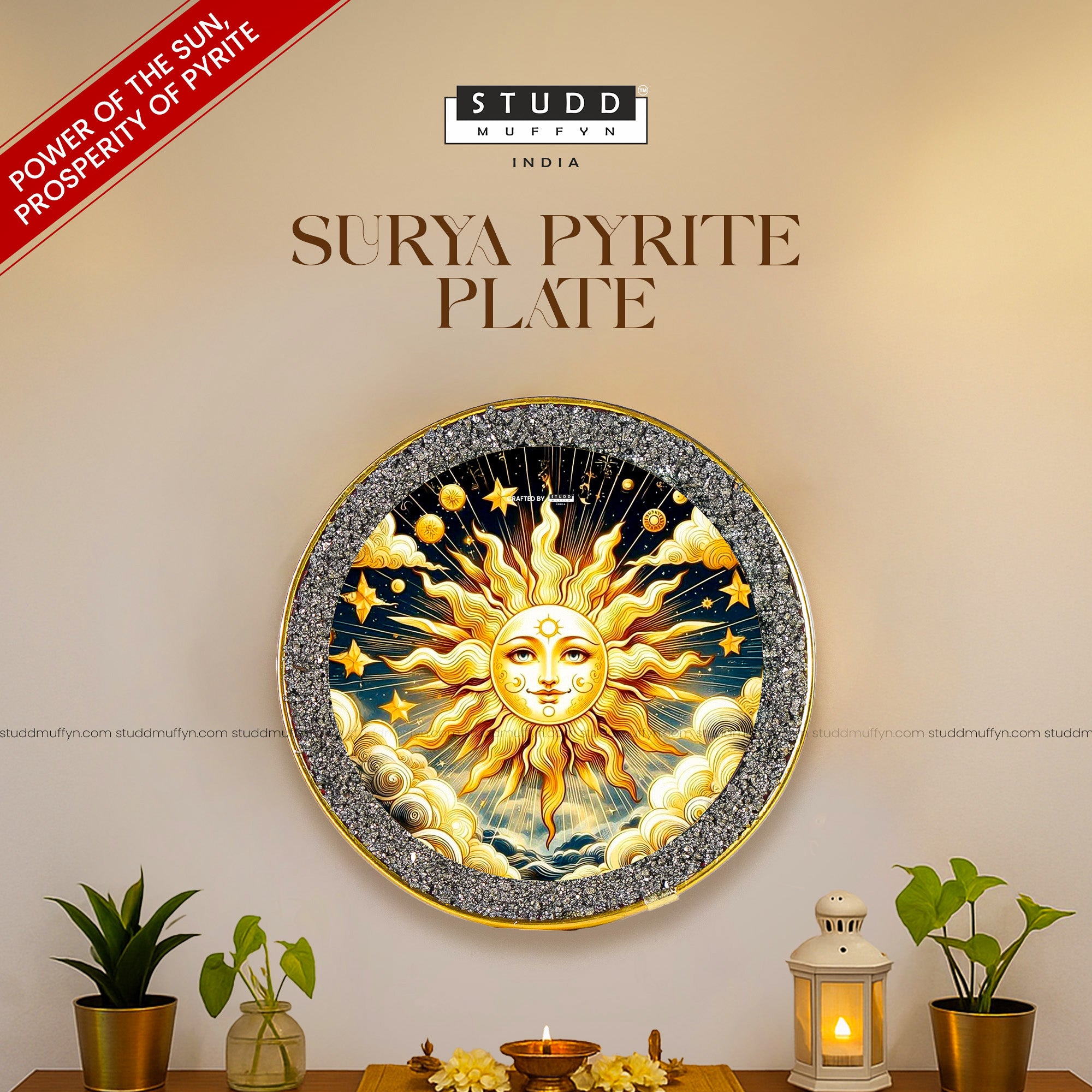 Bring home the divine power of Surya Dev combined with the legendary energy of Pyrite â the ultimate Money Magnet. This stunning plate symbolizes strength, clarity, and prosperity, radiating the brilliance of the Sun God while attracting wealth and success into your life.
