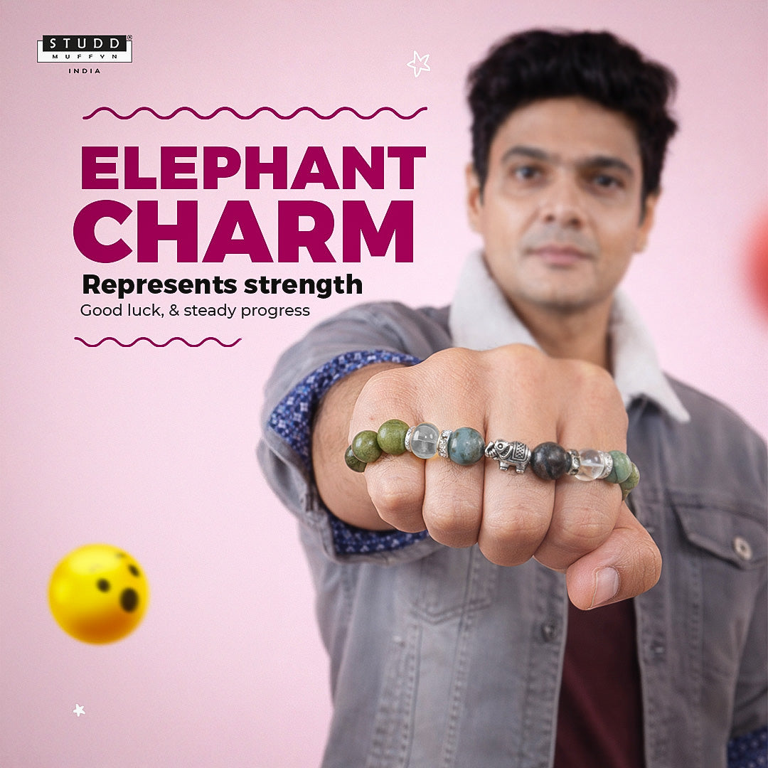 The elephant charm represents strength, good luck, and steady progress, making this bracelet both meaningful and powerful.