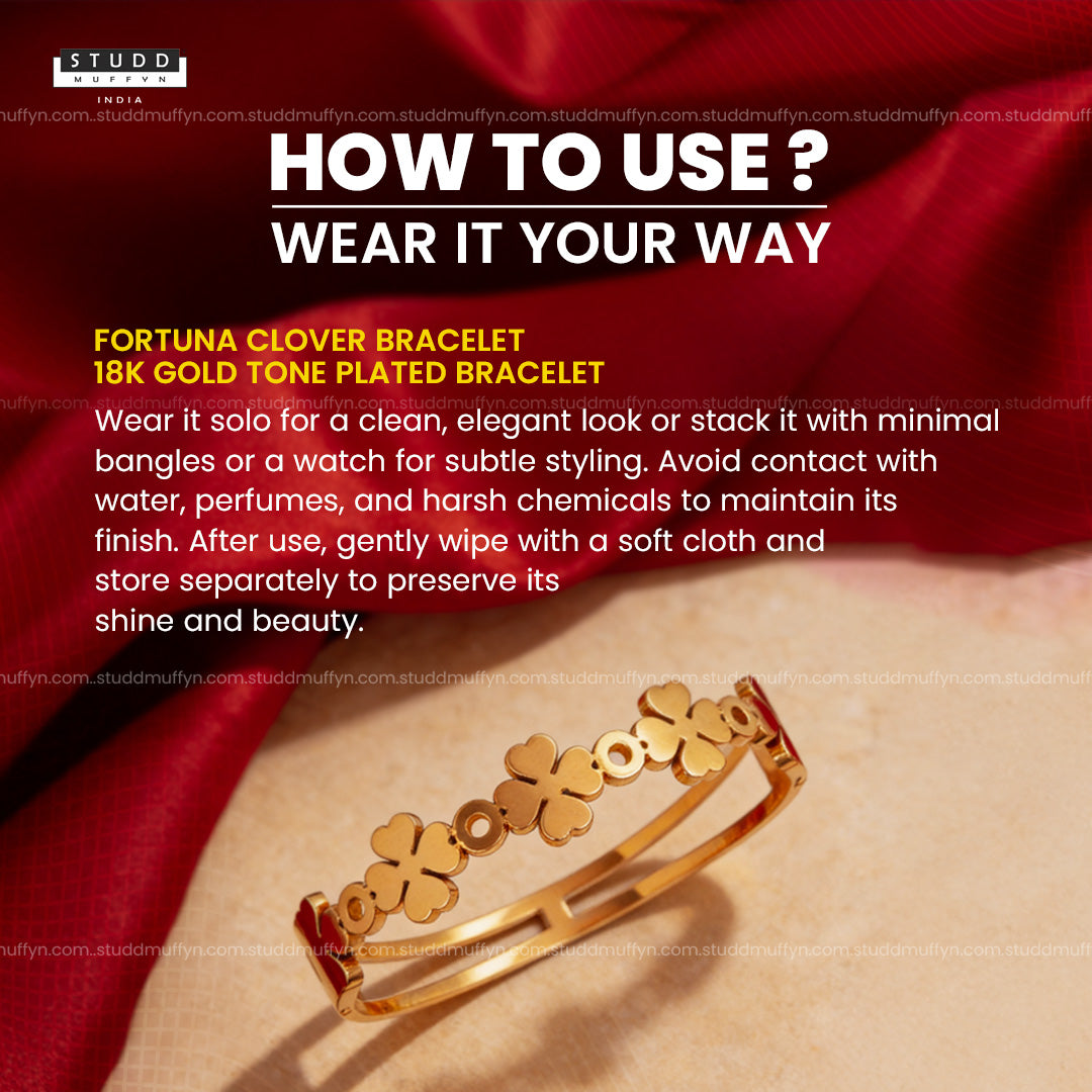 Fortuna Clover Bracelet - 18K Gold Tone Plated Bracelet