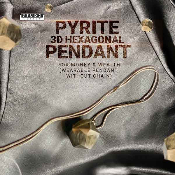 Pyrite 3d hexagonal Pendant (Wearable Pendant without chain) This crystal is for money and abundance. Pyrite attracts money, it’s known to be a money magnet. According to Crystal healing, having this crystal with you attracts wealth and fame. The 3d hexagonal pendant is a money magnet and it's super stylish. For men & women. These naturally occurring crystals have been shaped to make this hexagonal pendant keeping their natural cuts, and fissures in place. We haven’t excessively polished them so you may have pieces that have natural fissures in them. |