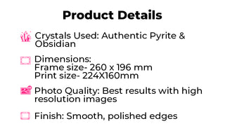 Transform your cherished moments into a radiant keepsake with our Personalised Crystal Photo Frame, beautifully crafted with authentic Pyrite and Obsidian crystals. Simply upload your favourite picture, and we convert it into a premium, high-clarity crystal photo block—enhanced with hand-placed crystals that amplify both beauty and energy.